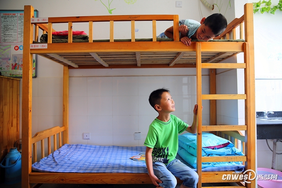 兩個(gè)住宿的孩子在宿舍開心地聊天。