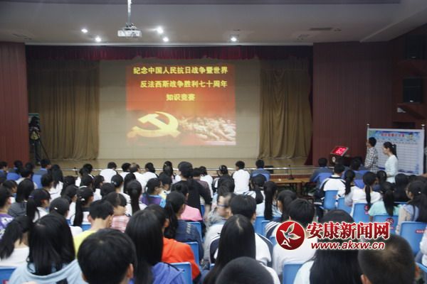 安康新聞網(wǎng)訊 9月11日晚上,寧陜中學(xué)階梯教室燈光明亮、人頭攢動,中國人民抗日戰(zhàn)爭暨世界反法西斯戰(zhàn)爭勝利70周年知識競賽正在有序進(jìn)行,來自高二、高三年級組文科班全體師生三百人參與此活動。
