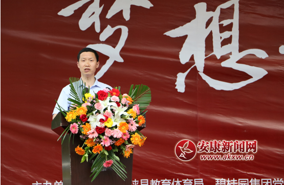 安康新聞網(wǎng)訊 6月14日,由安康市寧陜縣教育體育局、碧桂園集團(tuán)黨委工會、志愿者協(xié)會主辦,碧桂園陜西區(qū)域黨支部工會、陜西區(qū)域志愿者協(xié)會、碧桂園集團(tuán)陜西區(qū)域精準(zhǔn)扶貧鄉(xiāng)村振興辦公室、安康碧桂園金州府承辦的“夢想碧桂園·百城公益行—尋找國華學(xué)子”公益活動,在安康市寧陜縣城關(guān)初級中學(xué)溫馨啟幕。寧陜縣人民政府副縣長劉昌志、寧陜縣教育體育局局長石功賦、寧陜縣招生委員會辦公室主任田鳳安、寧陜縣城關(guān)初級中學(xué)校長謝細(xì)剛,以及碧桂園集團(tuán)陜西區(qū)域精準(zhǔn)扶貧鄉(xiāng)村振興辦公室負(fù)責(zé)人李忠洲、碧桂園集團(tuán)孫龍飛博士、碧桂園物業(yè)安康分公司總經(jīng)理李全、國華紀(jì)念中學(xué)郭麗新老師以及寧陜縣電視臺及愛心人士一同到場,共同見證本次慈善義舉。