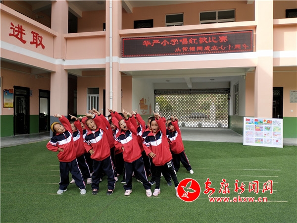 唱紅色歌曲,抒愛國之情!陡璩鎳贰ⅰ督裉焓悄愕纳铡、《我愛北京天安門》......一首首嘹亮的歌聲唱著華嚴(yán)小學(xué)全體師生對祖國的熱愛,進一步增進了該校師生對黨、對社會主義祖國的樸素情感。