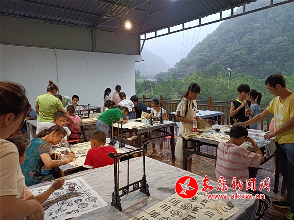 本網(wǎng)訊(通訊員 周怡倫 吳濤)晚上六點(diǎn)多,在寧陜縣廣貨街元潭村村委會的舞臺上,幾十個學(xué)生練書法、學(xué)繪畫的場景,成了村里一道靚麗的風(fēng)景線。
