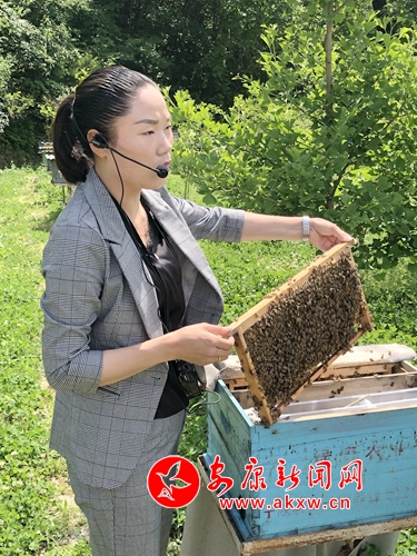 周世紅為合作社的留守婦女指導(dǎo)養(yǎng)蜂技術(shù)