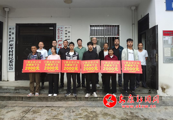 本網訊(通訊員 余金玲)8月29日,寧陜縣審計局在幫扶村嚴家坪村舉行了大學新生助學金發(fā)放儀式,為6名大學新生送上慰問和祝福。