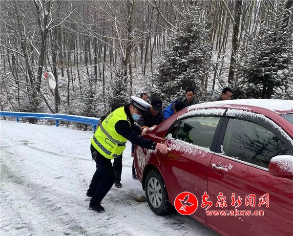 救援期間,執(zhí)勤民警、輔警冒著嚴(yán)寒,克服困難,一邊救援一邊引導(dǎo)過往車輛及時避險、安全行駛,有效防止了二次事故的發(fā)生。在疏通出安全道路后,又與公路段養(yǎng)護(hù)工作人員向被困車輛鋪灑防滑沙,歷時4個多小時的救援,被困擁堵車輛全部救援成功。臨行前,車輛駕駛員對大家的及時援助一再表示由衷的感謝,執(zhí)勤民警再次叮囑駕駛員一定要減速慢行,謹(jǐn)慎駕駛,加強(qiáng)道路交通安全防范意識,面對雨雪惡劣天氣,一定要提前備好防滑鏈,切勿存在僥幸心理。