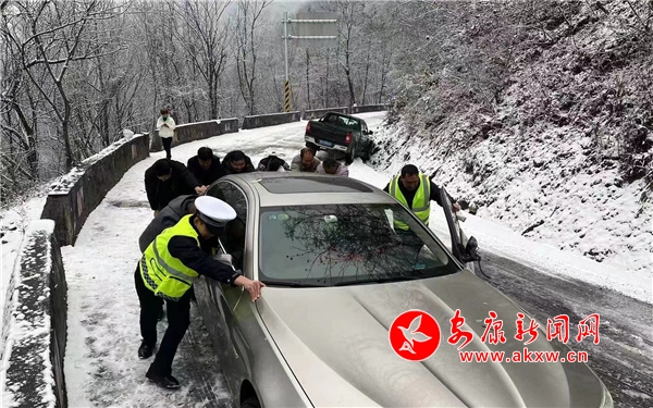 本網(wǎng)訊(通訊員 康忠靜)2月2日,寧陜縣突降大雪,道路結(jié)冰。寧陜縣公安局交通管理大隊廣貨街交警中隊先后接到多起報警求助,中隊民輔警聞警而動,協(xié)同公路段養(yǎng)護(hù)職工對被困車輛展開救援工作。