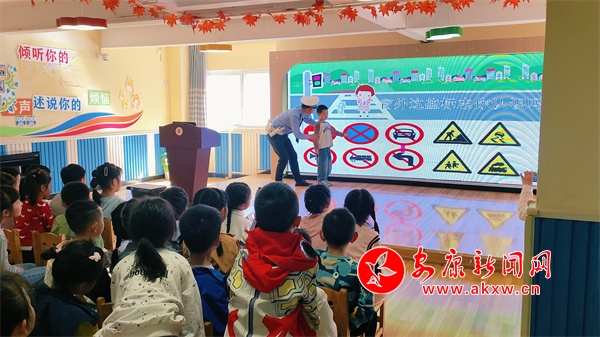 活動(dòng)中,民警用生動(dòng)有趣的語言為小朋友講解了安全行走、安全過馬路、安全乘車以及正確佩戴安全頭盔、系好安全帶、認(rèn)識(shí)交通標(biāo)志標(biāo)識(shí)等基本的交通安全知識(shí)。同時(shí),通過現(xiàn)場(chǎng)互動(dòng)、你問我答的方式,向?qū)W生們講解闖紅燈、橫穿馬路、多人騎乘摩托車等不文明交通行為的危害。最后,民警現(xiàn)場(chǎng)教學(xué)交通指揮手勢(shì),加深小朋友對(duì)交通安全常識(shí)的理解與記憶,引導(dǎo)他們從小樹立安全出行的理念,增強(qiáng)安全意識(shí),自覺遵守交通法規(guī)。