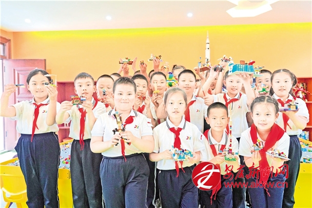 與古箏社團(tuán)室相鄰的“樂拼未來”樂高室里,學(xué)生們正分組搭建自己喜歡的模型。江蘇金壇捐贈(zèng)的樂高設(shè)備,為學(xué)校開展科創(chuàng)教育提供了有力支撐。過去,學(xué)校課程以理論教學(xué)為主,現(xiàn)在孩子們可以通過動(dòng)手實(shí)踐,將創(chuàng)意轉(zhuǎn)化為現(xiàn)實(shí)。學(xué)校依托這些資源,成立了數(shù)學(xué)思維訓(xùn)練社團(tuán)。社團(tuán)以提升學(xué)生綜合素養(yǎng)為核心目標(biāo),著重培養(yǎng)學(xué)生專注力與沉穩(wěn)耐心的學(xué)習(xí)品質(zhì)。訓(xùn)練過程中,學(xué)生不僅需要通過動(dòng)手實(shí)踐與腦力思考開展科學(xué)探究,還需在零件拼接的實(shí)踐活動(dòng)中,以細(xì)致嚴(yán)謹(jǐn)?shù)膽B(tài)度反復(fù)嘗試,逐步探索出正確的拼接方式,在實(shí)踐中深化對(duì)數(shù)學(xué)思維的理解與運(yùn)用。