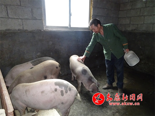 去年,在鎮(zhèn)村干部的指導和幫扶下,為他謀劃了發(fā)展養(yǎng)豬的路子。路子想好了,資金怎么辦?駐村工作隊的同志一方面聯(lián)系平利曙光生態(tài)農(nóng)業(yè)有限公司,為他出資一部分解決燃眉之急,建起了100m²的豬圈,養(yǎng)豬26頭。一方面通過小額貼息貸款3萬元,互助資金協(xié)會貸款1萬元,用于壯大養(yǎng)豬規(guī)模。豬圈建好后,袁業(yè)全決定好好干,他積極向附近養(yǎng)豬大戶學習,參加各種培訓班,認真學習養(yǎng)殖技術(shù),真正當起了“豬倌”,很快就掌握了養(yǎng)殖技術(shù)。在養(yǎng)豬過程中,他注重生態(tài)養(yǎng)殖,用玉米釀酒,用酒糟喂豬,豬糞處理當做有機化肥還田,他還在豬圈安裝了攝像頭,實行了信息化養(yǎng)殖管理。經(jīng)過袁業(yè)全的精心照料,第一批生豬出欄后,就賺了3萬多元,目前存欄的15頭豬,年底出欄預計有將近3萬余元的收入。