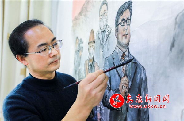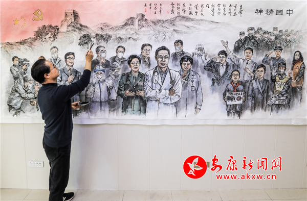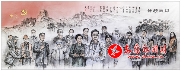 國(guó)畫作品《中國(guó)精神》主要歌頌在“眾志成城抗疫情”中的“逆行者”和各界英雄人士,反映抗擊疫情斗爭(zhēng)中涌現(xiàn)出來的感人形象和典型事件。