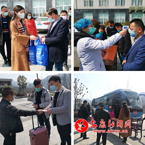 (出發(fā)前,該鎮(zhèn)黨委政府組織醫(yī)務(wù)人員對務(wù)工人員和車輛進(jìn)行了體溫監(jiān)測、消毒消殺,并統(tǒng)一發(fā)放了防護(hù)口罩和生活物資,切實(shí)保證了輸送人員的健康和安全。)