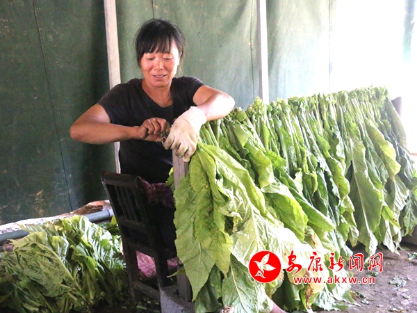在龍洞河村廖明清的烤煙房外,65歲的鄧明珠正熟練的挑揀、捆綁,幾分鐘就把一桿煙葉綁好了。鄧大娘一邊干活一邊笑著說:“通過扶貧搬遷搬到了山下,兒女在外務(wù)工,乘著現(xiàn)在我還能干,給兒女減輕一些負(fù)擔(dān),我已在這里干了幾個月了,每天100元的工資,土地也流轉(zhuǎn)給合作社,兩項加起來1萬多塊錢還是掙得到的。