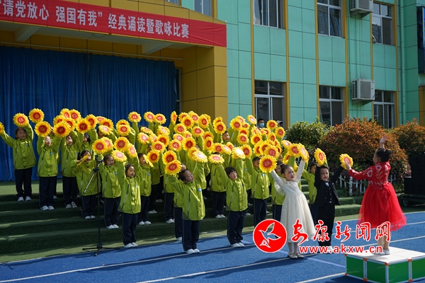 在做好疫情防控的前提下,比賽活動分組舉行。比賽過程中,小朋友們身著節(jié)日盛裝,逐一登臺展示。他們悅耳的誦讀聲、甜美的歌唱聲、整齊的舞姿和精彩的表現(xiàn),給人以視覺和聽覺的享受,比賽現(xiàn)場不時傳來陣陣熱烈的掌聲。