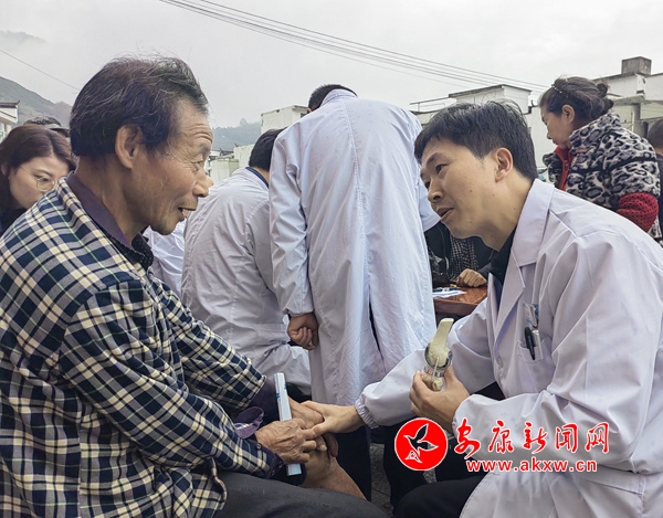 “血糖結(jié)果出來了,數(shù)值太高,一定要多注意飲食。”內(nèi)分泌科主任王占志提醒前來問診的陳緒春控制每餐主食的量,增加蔬菜攝入量。醫(yī)生們?yōu)楝F(xiàn)場群眾免費(fèi)測量血壓血糖,進(jìn)行心肺聽診,發(fā)放健康知識(shí)宣傳冊。用接地氣的方式為群眾講解常見病、多發(fā)病、慢性病的康復(fù)護(hù)理等知識(shí),普及傳染病防治常識(shí)和健康生活指南,科普腦卒中、胸痛、創(chuàng)傷等相關(guān)危急癥的處置常識(shí),引導(dǎo)群眾關(guān)注健康、合理膳食、適當(dāng)運(yùn)動(dòng),養(yǎng)成科學(xué)、健康的生活方式。集中義診后,醫(yī)生團(tuán)隊(duì)還對(duì)行動(dòng)不便的村民進(jìn)行入戶走訪,解決殘疾鑒定等難題。