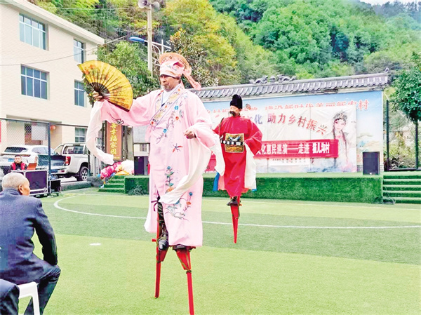 在五峰村,村支部書記羅仁春告訴記者,2023年村委會(huì)牽頭成立了五峰村文化民俗文藝協(xié)會(huì),陸續(xù)加入的48名會(huì)員涵蓋老中青三代,既有傳承高蹺絕技的老人,也有主動(dòng)學(xué)習(xí)弦子腔的年青一代。今年32歲的村民小梅加入?yún)f(xié)會(huì)后,一改往日下班后悶在家中的狀態(tài),每天下午吃完飯都會(huì)下樓和新認(rèn)識的姐妹載歌載舞,很快就成為舞蹈隊(duì)的主力。“以前不知道我們村上還有文藝協(xié)會(huì),自從村上干部告訴我后,我就趕緊加入了這個(gè)小團(tuán)體,既鍛煉了身體,又愉悅了心情,生活幸福感越來越強(qiáng)烈。”身著舞蹈服的小梅身姿婀娜,水袖飛揚(yáng)間,明媚的笑容如花一樣燦爛。