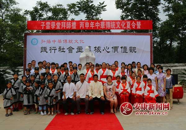目前,學(xué)校先期開(kāi)啟中華傳統(tǒng)文化夏令營(yíng),已招收50名新生,將用四個(gè)月的時(shí)間實(shí)施“伏羲教育”小學(xué)段的教育改革探索,傳承國(guó)學(xué)經(jīng)典,弘揚(yáng)中華優(yōu)秀傳統(tǒng)文化,搭建“修身齊家,構(gòu)建和諧社會(huì)”為宗旨的社會(huì)教育與家庭教育相結(jié)合的新型教育模式。在開(kāi)營(yíng)儀式上,石泉“伏羲學(xué)校”的老師、學(xué)生、家長(zhǎng)身著民族傳統(tǒng)服裝開(kāi)展祭孔典禮、拜師儀式、集體誦讀《弟子規(guī)》等形式弘揚(yáng)國(guó)學(xué)。