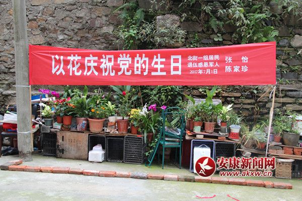 安康新聞網(wǎng)訊(趙杰 陳媛 劉禮偉)驕陽(yáng)似火的七月,石泉縣城處處涌動(dòng)著熱浪,而在濱江大道通往明清古街的小南門巷口,一排人為擺放的綠植鮮花卻給盛夏帶來(lái)了一絲清涼和別樣風(fēng)景,一掛醒目的條幅——“以花慶祝黨的生日”更是引得來(lái)往過(guò)路的人紛紛側(cè)目停留。