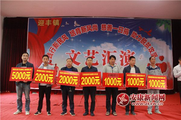 一首《讓世界充滿愛》拉開了活動帷幕,關心支持迎豐發(fā)展的各企業(yè)伴隨歌聲紛紛獻上愛心,以陜西石泉萬達建設工程有限公司為代表的12家愛心企業(yè)代表人依次登臺捐款,迎豐鎮(zhèn)鎮(zhèn)長譚可新代表鎮(zhèn)慈善協(xié)會接收捐款,此環(huán)節(jié)籌得捐款1.7萬元,愛心企業(yè)的慷慨解囊充分彰顯了這些企業(yè)的社會責任感。