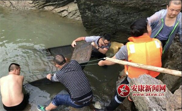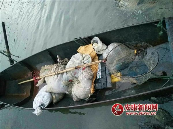 當(dāng)日下午16:00時(shí)許,石泉縣水利局接舉報(bào)稱石泉水庫(kù)大壩下有人非法電魚消息后,當(dāng)即指派漁政執(zhí)法人員前往查處。經(jīng)現(xiàn)場(chǎng)查看,水庫(kù)大壩下卻有一疑似捕魚船只在壩下江面游弋,行跡十分可疑。由于大壩下游山體險(xiǎn)峻,執(zhí)法人員只好采取一邊分組盯守,一邊通知相關(guān)人員準(zhǔn)備橡皮伐及攀巖工具。于此同時(shí),城關(guān)派出所民警也聞?dòng)嵆鼍M(jìn)行現(xiàn)場(chǎng)警戒,并共同商議行動(dòng)方案。執(zhí)法人員決定冒險(xiǎn)分兩組分別向非法捕撈嫌疑人藏匿地點(diǎn)靠攏。一組劃橡皮伐由漢江左岸向壩基右岸靠攏,一組由右岸峭壁攀巖而下,由于灘險(xiǎn)流急,崖高壁陡,兩組人員行進(jìn)都十分困難且相當(dāng)危險(xiǎn),稍有不慎就有墜河跌崖的危險(xiǎn)。當(dāng)執(zhí)法人員抵達(dá)右岸壩基時(shí),非法捕撈嫌疑人早已利用熟悉地形和水性好的優(yōu)勢(shì)先將船只灌水沉入江中后,又將漁具藏匿后選擇隱蔽路線逃之夭夭。經(jīng)執(zhí)法人員進(jìn)行近一個(gè)小時(shí)的仔細(xì)搜索,終于在壩基右岸一巖壁下十分隱蔽的水灘里發(fā)現(xiàn)了沉入水下的船只。由于船只藏匿地地勢(shì)險(xiǎn)要,且水下水情不明,執(zhí)法人員幾經(jīng)試探后,才小心謹(jǐn)慎的潛入水下將沉船拖出水面,F(xiàn)場(chǎng)共收繳電瓶等非法捕撈漁具10余件,漁獲物40余斤。