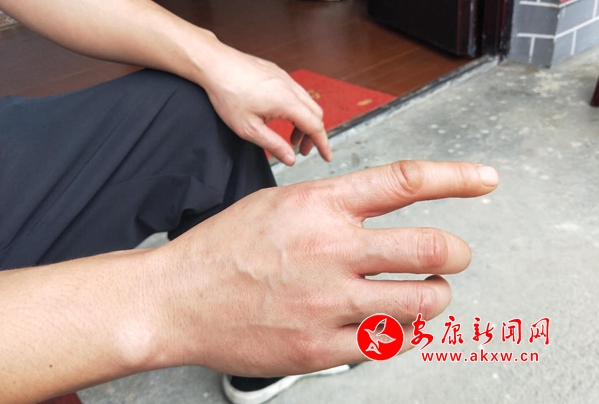 (鄧召成磨起繭子的手)