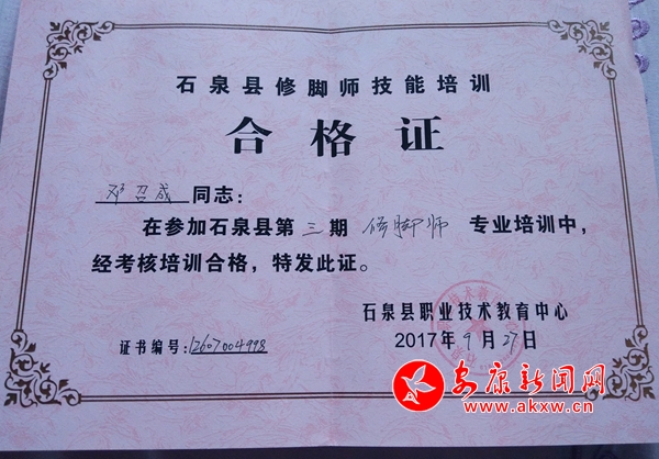 “多謝當(dāng)初你們讓我去參加修腳培訓(xùn),學(xué)得一技之長(zhǎng),在外面找到了工作,也感謝黨的好政策,當(dāng)初參加培訓(xùn)每天包吃包住還補(bǔ)助交通費(fèi)。我一定好好干,給村里的貧困戶帶個(gè)好頭。”這次回村,鄧召成還專門來到村委會(huì)向包戶干部表示感謝。