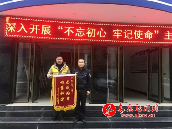 11月12日,天津松果出行有限公司石泉分公司負責人沈某將一面寫有“為民辦事,破案神速”的錦旗送至該所民警手中,感謝該所民警迅速查處案件。