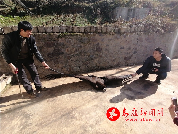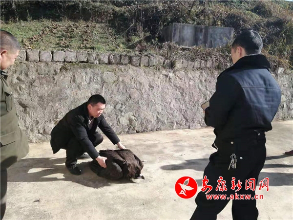當(dāng)日中午,工作隊員在村內(nèi)發(fā)現(xiàn)一只疑似受傷跌落的“大鳥”,隊員隨即與鎮(zhèn)農(nóng)業(yè)綜合服務(wù)站和縣林業(yè)部門取得聯(lián)系。經(jīng)工作人員初步鑒定,該鳥為禿鷲,屬國家二級保護動物。因在本地較為稀有,加之此鳥已無法獨立活動,工作人員將其帶回了林業(yè)部門做進(jìn)一步檢查,待康復(fù)后,將把它放歸山林。