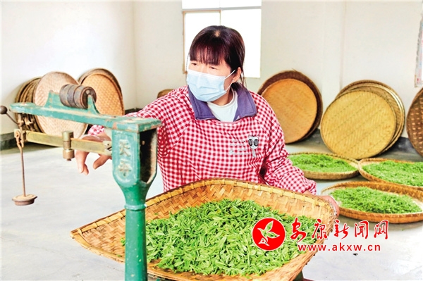 熨斗鎮(zhèn)先聯(lián)村依托1300多畝茶園,還成立了商貿(mào)公司,堅持以企業(yè)為龍頭,帶動廣大農(nóng)戶形成了從茶樹種植、茶葉加工、茶葉銷售到茶園觀光旅游為一體的產(chǎn)業(yè)鏈。“我們依托這個茶園基地,通過茶葉加工技術(shù)提升、品牌打造、電商銷售等渠道把靈雀山茶葉不斷推向市場,再依托商貿(mào)企業(yè)把產(chǎn)業(yè)融合發(fā)展聯(lián)動帶起來,讓群眾持續(xù)穩(wěn)定增收!”熨斗鎮(zhèn)先聯(lián)村駐村第一書記邱衛(wèi)東說。