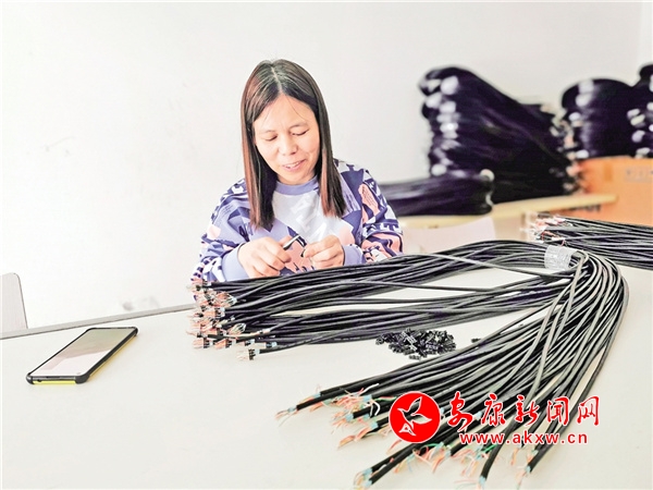 通過加工電子線束,黃海英們的生活得到了顯著改善。“以前送完孩子上學(xué),就沒事干了。自從我們這里有了這家電子線束加工廠,每天趁著娃上學(xué)后來這里做工,一月能掙3500多元,隨著技術(shù)熟練工資還會漲,日子越來越有奔頭了。”黃海英說。
