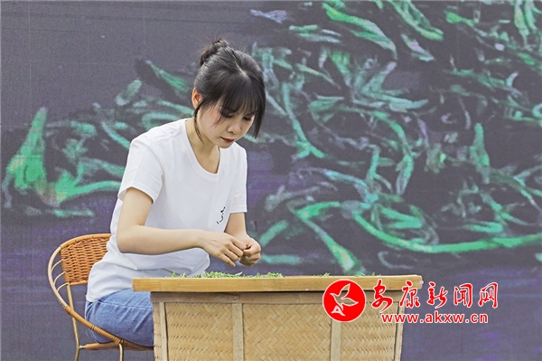 隨著舞蹈《踏春采茶》律動(dòng)的節(jié)奏響起,活動(dòng)正式拉開了序幕。背景大屏里,檔山村民們采茶忙的身影錯(cuò)落有致。鏡頭拉近,一雙雙靈巧的手在茶樹枝丫間上下翻飛,竹簍里的綠芽帶著春天的無限生機(jī)饋以村民們豐厚的回報(bào)。“我采茶已經(jīng)有5年時(shí)間了,每年春天,都會(huì)在這個(gè)茶園采摘茶葉,一天能采摘4斤左右,一斤茶葉80元,一天下來也能賺個(gè)300多元,這個(gè)收入在農(nóng)村還算是很不錯(cuò)的。”帶著滿足的笑容,村民劉新燕掰著手指頭算起了經(jīng)濟(jì)賬。