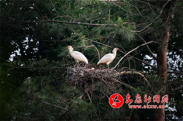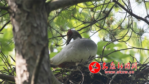 4月中旬,陜西石泉城關(guān)鎮(zhèn)絲銀壩村草池灣的朱鹮寶寶要出生啦!朱鹮爸爸和朱鹮媽媽一邊孵化寶寶,一邊擴建裝修巢穴。它們還在巢穴里鋪上柔軟的干草、羽毛,等待寶寶出生。