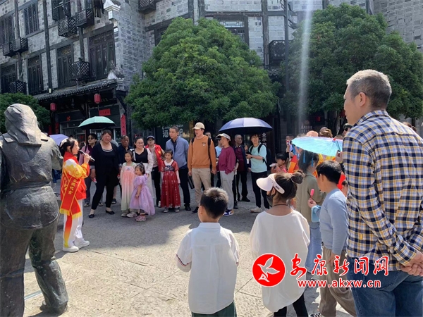“各位游客大家好,我是自石泉縣城關(guān)一小的小小講解員,歡迎大家跟隨我的腳步游覽石泉秦巴老街”。這五一假日期間從石泉秦巴老街里傳來的朗朗童聲,來自“小小講解員·童音話石泉”——石泉縣全域旅游紅領(lǐng)巾講解員培訓(xùn)班的小朋友們用稚嫩且熟練的話語、自信的神態(tài)向往來游客們介紹了石泉老街東西城門、石泉縣衙、禹王宮、江西會(huì)館以及老街上的美食,小小講解員各個(gè)儀態(tài)大方、表達(dá)清晰、發(fā)揮自如,贏得了游客們駐足圍觀,時(shí)不時(shí)傳來陣陣掌聲和夸獎(jiǎng)。