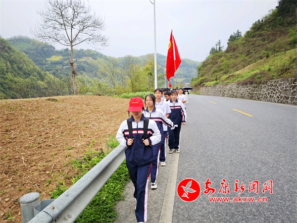 活動中,該校師生沿著公路有序行進(jìn),途中相互鼓勵打氣,順手撿走路邊垃圾,用實際行動保護家鄉(xiāng)的綠水青山,彰顯中學(xué)生良好的精神風(fēng)貌。經(jīng)過2個小時的徒步行走,師生順利到達(dá)終點喜河鎮(zhèn)紅色文化廣場。