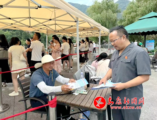 在各大景區(qū),法官干警給旅游景區(qū)的工作人員講解相關(guān)法律知識、教他們?nèi)绾我婪皶r處理與游客之間的矛盾糾紛,確保一旦發(fā)生旅游糾紛,第一時間有人報告、第一時間有人接待、第一時間有人解決。向來往游客和景區(qū)工作人員發(fā)放旅游法宣傳手冊,對游客較為關(guān)注的“旅游者的權(quán)利、旅行社的義務(wù)、旅游安全如何保障、旅游糾紛如何解決”等進(jìn)行詳細(xì)解答,并向游客積極熱情解答各類法律咨詢。