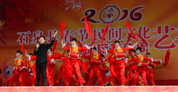 安康新聞網(wǎng)訊(通訊員 張會(huì)軍)2月15日是農(nóng)歷正月初八,石泉縣城好熱鬧。來(lái)自11個(gè)鎮(zhèn)的20多支民間文藝社團(tuán)表演的秧歌、鑼鼓、高蹺、舞龍、舞獅、彩蓮船等文藝節(jié)目……