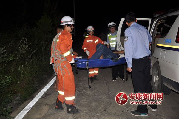 摩托車失控三人墜崖 旬陽消防緊急救援