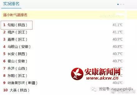 安康新聞網(wǎng)訊(通訊員 梁慧)連日來,“旬陽”牌烤箱火力全開,溫度一再飆升,據(jù)中央氣象臺發(fā)布的全國氣溫實況排名中,旬陽縣以41.1℃排名全國第一。uLU安康新聞網(wǎng)