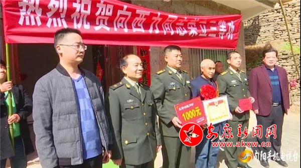 喜慶的鑼鼓聲中,旬陽縣退役軍人事務(wù)局為白柳鎮(zhèn)西溝河村向明剛佩戴大紅花,并送去了喜報、慰問金以及親切的問候。向明剛的兒子向西力2013年從遼寧大學(xué)入伍,服役于武警四川總隊某中隊,在參加武警四川總隊比武獲得個人第一名,并授予三等功。