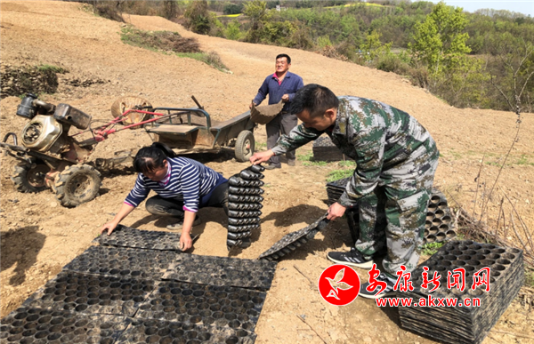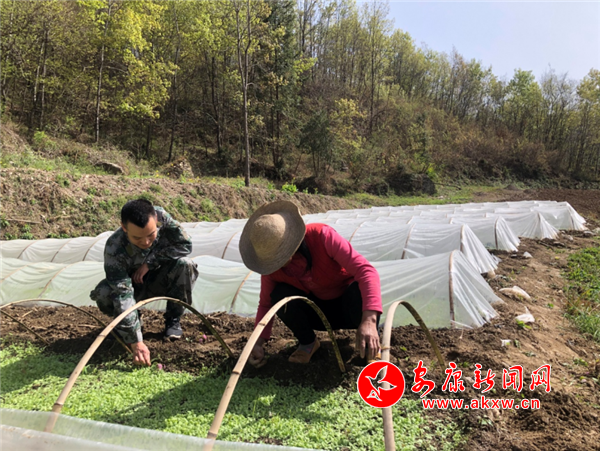 (指導貧困戶秦德文制作煙苗子床)