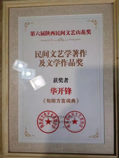 3月3日,第六屆“陜西民間文藝山花獎”頒獎典禮在陜歌大劇院隆重舉行。旬陽市政協(xié)副主席、陜西省特級教師教學(xué)名師華開鋒編撰的著作《旬陽方言詞典》和王智編著的《關(guān)中老作坊》兩部作品榮獲民間文藝學(xué)著作及文學(xué)作品獎。