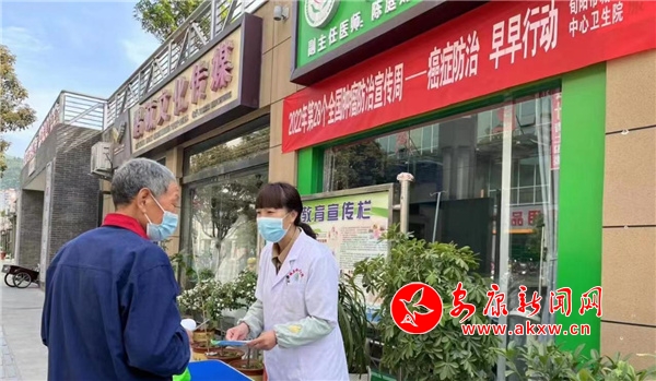 本網(wǎng)訊(通訊員 陳子賢)2022年4月15日至21日是第28個全國腫瘤防治宣傳周。為進(jìn)一步提高全社會癌癥防控意識,促進(jìn)廣大居民了解癌癥預(yù)防知識,主動干預(yù)癌癥高危因素,營造全民防癌抗癌的良好氛圍。4月20日早上,旬陽市城關(guān)中心衛(wèi)生院走進(jìn)下菜灣社區(qū),聯(lián)合社區(qū)衛(wèi)生室開展 “癌癥防治 早早行動”為主題的全國腫瘤防治宣傳周活動。