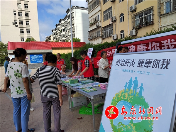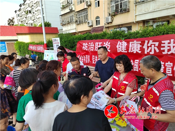 本網(wǎng)訊(通訊員 陳子賢)2022年7月28日是第12個世界肝炎日,為進一步普及各種肝炎的防治知識,提升社區(qū)居民防治意識,增強自我保護能力。7月28日早上,旬陽市城關中心衛(wèi)生院聯(lián)合市疾控中心、市健康教育中心走進康花園小區(qū)廣場,開展“防治肝炎,健康你我”主題宣傳活動。