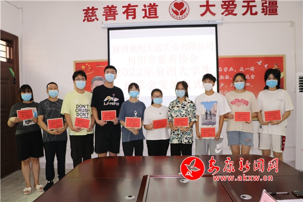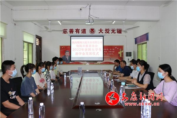 本網(wǎng)訊(通訊員 龔成麗)8月24日,陜西翱翔天越實(shí)業(yè)有限公司聯(lián)合旬陽(yáng)市慈善協(xié)會(huì)舉行了2022年貧困大學(xué)生助學(xué)金發(fā)放儀式。現(xiàn)場(chǎng)為13名品學(xué)兼優(yōu)、家庭困難的學(xué)生每人發(fā)放助學(xué)金4000元。