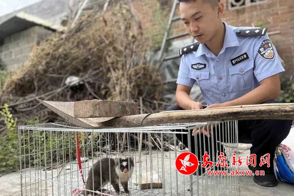 當(dāng)日中午,呂河派出所接到群眾報(bào)警稱,“在其家中鐵籠里關(guān)了一只像果子貍的野生動物,請求幫助。”接警后,值班民警迅速帶隊(duì)前往處置。到達(dá)現(xiàn)場后,民警看到了這只“不速之客”,是一只灰褐色皮毛的小動物,臉?biāo)坪,嘴似豬,花白面,時不時上躥下跳,身體狀況還不錯。民警經(jīng)過仔細(xì)比對和觀察,并經(jīng)林業(yè)部門工作人員確認(rèn),發(fā)現(xiàn)該動物并非果子貍,而是一只鼬獾,屬于國家三級保護(hù)動物。