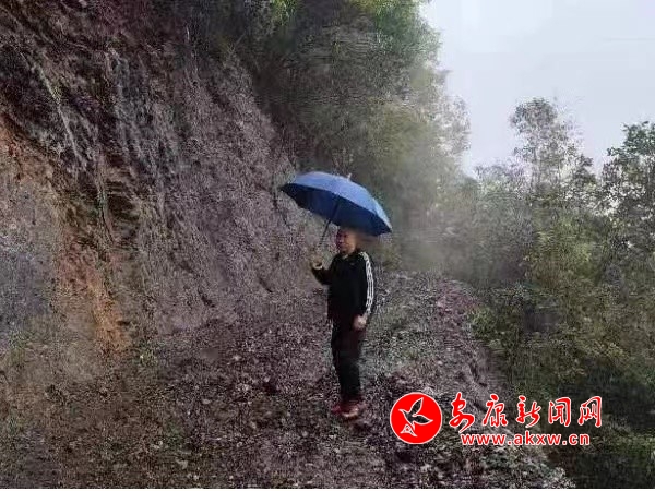 石門鎮(zhèn)工作人員在勘察滑坡點