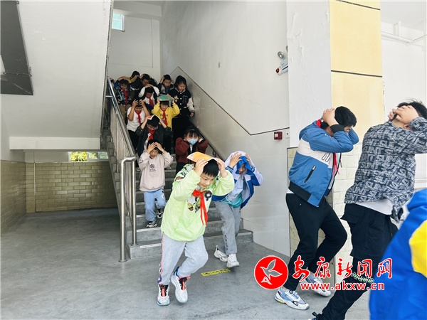 片刻之后,要求師生疏散撤離教學(xué)樓的指令發(fā)出,各班學(xué)生在老師的組織下沿指定路線撤離。行進中,大家降低身體重心躬身前行,有的用雙手捂住頭部,有的用書本遮蓋頭頂,以最快的速度向安全疏散點轉(zhuǎn)移,整個疏散撤離過程快速而有序,僅用時1分40秒,600余名師生便安全撤離至學(xué)校操場,實現(xiàn)了預(yù)期演練目標(biāo)。