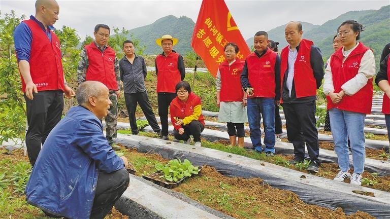 旬陽市仙河鎮(zhèn)志愿服務隊走進田間地頭。 旬陽市委宣傳部供圖