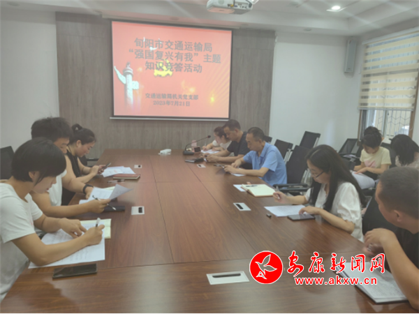 本網(wǎng)訊 為深入學(xué)習(xí)貫徹黨的二十大精神,深化“強(qiáng)國(guó)復(fù)興有我”群眾性主題宣傳教育活動(dòng),進(jìn)一步激發(fā)系統(tǒng)黨員群眾愛黨、愛國(guó)熱情,教育引導(dǎo)黨員群眾堅(jiān)定理想信念,凝聚奮進(jìn)力量,筑牢初心使命;激發(fā)黨員群眾干事創(chuàng)業(yè)激情,牢固樹立高質(zhì)量項(xiàng)目建設(shè)和高品質(zhì)運(yùn)輸服務(wù)“雙高”理念。近日,旬陽市交通運(yùn)輸局結(jié)合主題黨日活動(dòng),突擊組織機(jī)關(guān)30余名黨員干部開展“強(qiáng)國(guó)復(fù)興有我”主題宣傳教育知識(shí)競(jìng)答活動(dòng)。