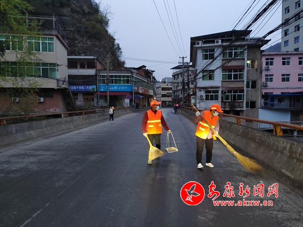 環(huán)衛(wèi)隊(duì)伍清掃集鎮(zhèn)主街道
