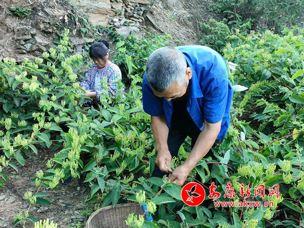 今年雨水適中,西坡村300余畝金銀花迎來了大豐收。村民們則趁著好天氣,進行著采收工作,只見她們忙碌地穿梭在田埂間,手指翻動間,就將含苞待放的金銀花蕾摘下。