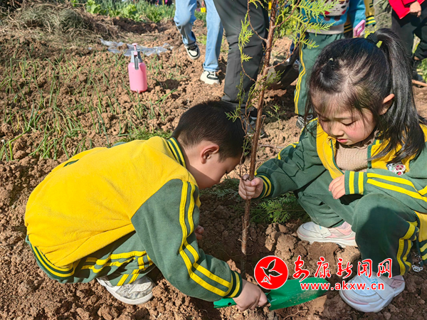 3月11日,旬陽市第一幼兒園中班組織開展“不負春光,為綠充‘植’”親子植樹活動。在植樹點,孩子們認識各種植樹工具,了解植樹步驟,和家長一起挖坑、……